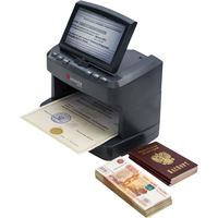 Универсальный просмотровый детектор для комплексного контроля защитных признаков:- Геометрический контроль- Контроль магнитных меток- Контроль в ультрафиолетовом свете (УФ диоды)- Контроль в белом проходящем (сквозном) свете- Контроль в белом отраженном свете- Контроль под воздействием косопадающего белого света- Контроль под воздействием косопадающего ИК излучения- Контроль в инфракрасном свете (отраженном)- 3-in-1 control (контроль в инфракрасном свете на просвет)- Контроль спецэлемента «М»- Контроль в инфракрасном свете с увеличением- Контроль в белом отраженном свете с увеличением- Контроль в ультрафиолетовом свете с увеличениемLCD-дисплей и камера с большим углом обзора обеспечивают отображение 90% банкноты без геометрических искажений.Дисплей большого размера регулируется в 2-х плоскостях.