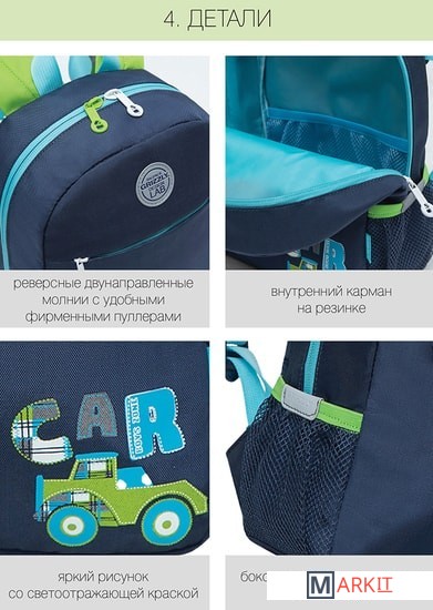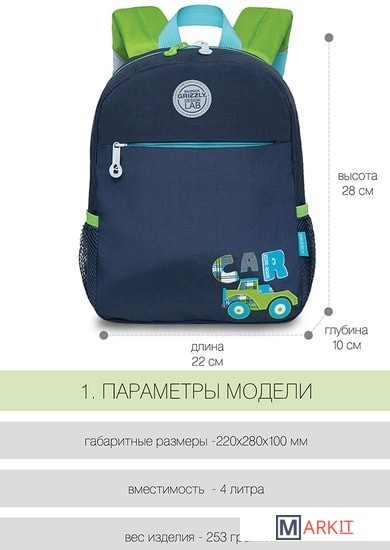 Стильный, легкий и практичный рюкзак Grizzly станет незаменимым аксессуаром для ребенка. С ним очень удобно ходить в садик или на развивающие кружки, ездить в гости или просто брать его на прогулку. В рюкзак поместиться все необходимое: и блокнот, и игрушка, и контейнер с едой. А специальный карман из сетки с резиночкой не даст рассыпаться карандашам и фломастерам или сломаться хрупким предметам. Впереди есть кармашек на молнии для разных мелочей, а в боковые карманы можно поместить бутылочку с водой. Имея такой аксессуар, ребенок быстрее приучится к порядку и ответственности за свои вещи. Мягкая спинка и регулируемые лямки делают рюкзачок очень комфортным, а светоотражающие элементы со всех сторон обеспечивают дополнительную безопасность в условиях недостаточной видимости. Материал с водо- и грязеотталкивающей пропиткой. Есть ручка для переноски. Рюкзак можно стирать в стиральной машине.