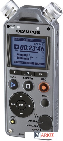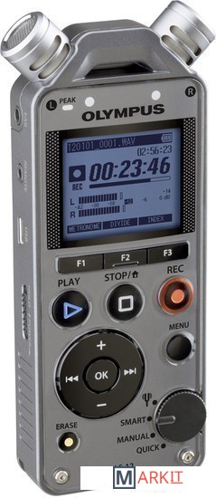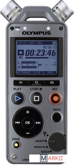 В модели LS-12 применяется простая схема управления, не влияющая на конечное качество записи. На лицевой стороне диктофона расположен один диск, с помощью которого можно быстро выбрать тюнер и различные режимы записи. Благодаря простому экранному интерфейсу, понятному расположению кнопок, голосовому указанию и звуковым сообщениям, а также интеллектуальному режиму, в котором осуществляется автоматическая регулировка оптимального уровня записи, можно легко обеспечить студийное качество записи.