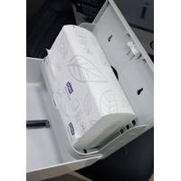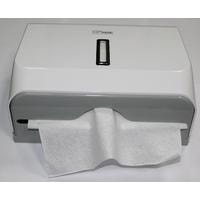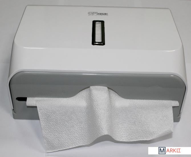 Вместимость – 200 бумажных листов (1 пачка полотенец).Изготовлен из ударопрочного пластика АВS.Закрывается на ключ.Смотровое окно для контроля остатка полотенец.Под Z и V салфетки.