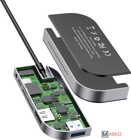 Baseus Bend Angle No.7 Multifunctional Type-C CAHUB-WJ0G представляет собой USB-концентратор, созданный специально для совместной работы с планшетом iPad Pro. Он оснащен портом USB 3.0, разъемом HDMI с поддержкой 4K, слотами для карт памяти SD/MicroSD, а также сквозным портом USB-C и аудиоразъемом 3.5 мм. Хаб позволяет расширить возможности вашего планшетного компьютера, оснащенного всего одним разъемом USB-C.