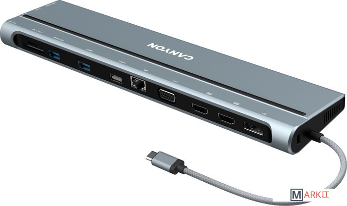 Если ваш ноутбук оснащен USB type-C, эта универсальная док-станция CNS-HDS90, являющаяся 3-им поколением популярной модели, расширит его возможности до максимума с помощью 14 встроенных интерфейсов. Через док-станцию к вашему ноутбуку можно подключать 4 монитора одновременно с помощью разъемов Display Port (4Kx60Гц) и VGA.Разъем для зарядки USB-C PD мощностью до 100 Вт позволяет заряжать подключенное устройство с оптимальной скоростью. Кроме того, в док-станцию Canyon HDS90 встроено комбинированное 3,5-мм аудиогнездо для наушников и микрофона, кардридер SD и TF-карт, Ethernet для бесперебойного интернет-соединения и USB-С 3.2 Gen 2 для быстрой передачи данных. Док-станция 14-в-1 CNS-HDS90 станет современным и стильным гаджетом на вашем рабочем столе.