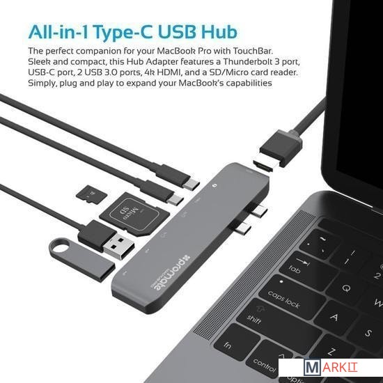 Markit » USB-хабы и док-станции » Док-станция Promate MacHub-Pro (серый)