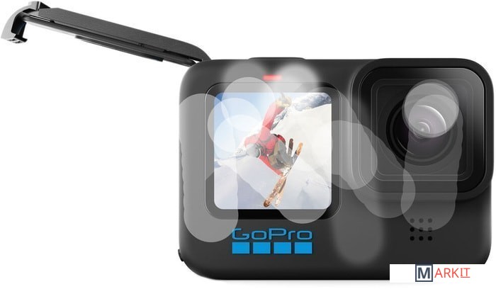 Камера HERO10 Black | Аккумулятор | Изогнутое клеящееся крепление | Крепежная пряжка | Кабель USB-C | Крепежный винт | Футляр для камеры |