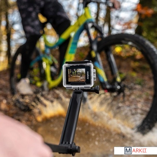 Камера обладает разрешением FullHD при 60 кадрах в секунду или интерполированным 4K пр 30 кадрах в секунду. Она обладает такими функциями, как замедленная или покадровая съемка, и отлично фотографирует – фотографии имеют разрешение до 16 Mp. Ею можно управлять по Wi-Fi через приложение в телефоне, а любители водных видов спорта могут с помощью чехла снимать под водой.