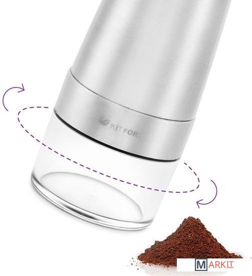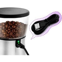 Мельница заряжается от розетки или от съёмного аккумулятора и имеет micro USB-разъём. Чтобы начать работу мельницы, просто нажмите на выключатель. Мельница будет работать, пока вы его не отожмёте.