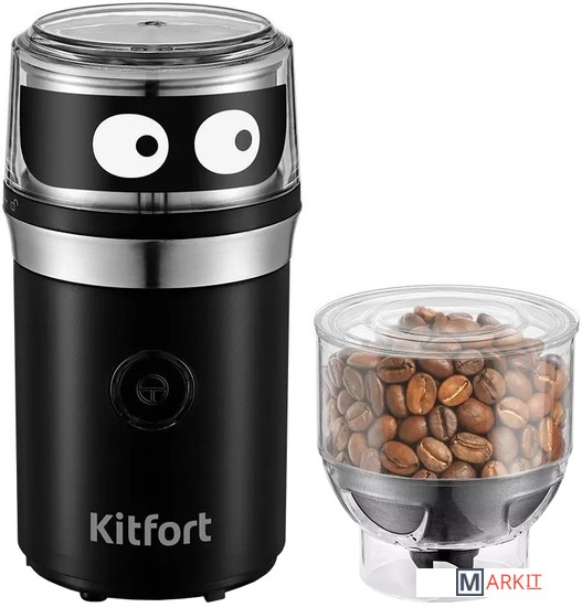Качественное измельчение!Кофемолка Kitfort КТ-799 предназначена для помола кофейных зёрен и измельчения специй и орехов. Кофемолка укомплектована двумя съёмными чашами: чашей для кофе и чашей для специй.Аромат свежемолотого кофеВ чаше для кофе установлен двухлезвийный нож для эффективного помола зёрен кофе. Особенности свежего помола в том, что кофейные зёрна максимально сохраняют свои свойства, и кофе остаётся свежим и вкусным.Всё на ваш вкусЧаша для специй, оснащённая четырёхлезвийным ножом, подходит для измельчения специй, а также других твёрдых и мягких продуктов, например орехов или сыра.Простое использованиеКофемолка проста в эксплуатации, так как включается она простым нажатием на кнопку включения. Защитный механизм не позволит включить кофемолку, если верхняя крышка не установлена.Легко чистить!Полностью разборная конструкция позволяет легко и быстро очистить кофемолку. В комплекте идёт щёточка для вашего удобства.Уровень шума: 85 дБ.Длина шнура: 1 м.Размеры: 102 x 102 x 194 мм.Вес: 0.8 кг.