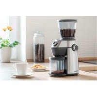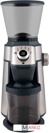 Стальные жернова обеспечивают быстрое и точное перемалывание15 настроек помола – от тонкого до грубогоПоворотным регулятором можно настроить количество порций от 2 до 10 чашек, с функцией автоматического выключенияСъемная верхняя часть кофемолки облегчает ее чисткуНоваторская конструкция с редуктором привода планетарного типа обеспечивает небольшой уровень шума во время работыЧерез прозрачную воронку можно засыпать до 350 г кофейных зеренСъемная прозрачная емкость для молотого кофеПотребляемая мощность: 150 ВтРазмеры (ширина × глубина × высота): 25 × 16,5 × 36 смМасса: 2 кг