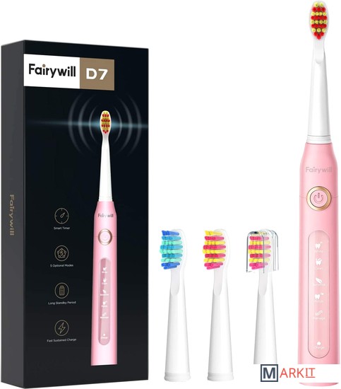 Markit » Электрические зубные щетки и ирригаторы » Электрическая зубная щетка Fairywill D7S (розовый, 4 насадки)