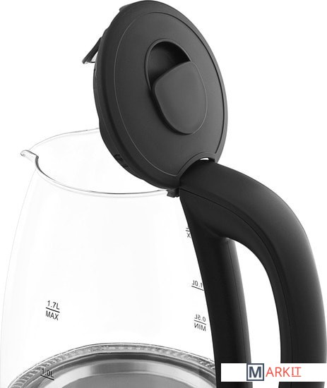Прозрачный стеклянный электрочайник с LED-подсветкой и Strix-контроллером для защиты от перегрева. Объем чайника EKL-F100 составляет 1,7 литра, а подставка обеспечивает оборот на 360°. Материал подставки, основы и ручки — поликарбонат черного цвета и шлифованный металл. Основная часть чайника выполнена из прочного закаленного стекла с отметками объема от 0.5 л до 1.7 л.