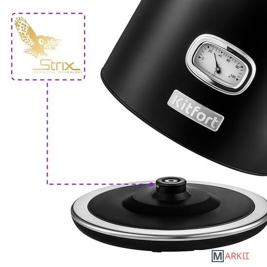 Мощный и вместительный чайник Kitfort KT-6150 подойдёт для особых встреч с семьёй и друзьями. А лаконичный винтажный дизайн придётся по душе любой хозяйке, и отлично впишется в ваш интерьер.Благодаря стильному термометру в винтажном исполнении вы сможете правильно заварить напитки, для которых требуется определённая температура воды. Например, зелёный чай, белый чай или другие напитки.За один раз в чайнике можно вскипятить до 1,7 л воды. Этого хватит, чтобы приготовить горячие напитки на большую семью! Мерная шкала позволяет легко следить за уровнем воды.Современная конструкция чайника препятствует образованию накипи, облегчает уход, значительно снижает шум при нагревании воды. В носике чайника расположен съёмный фильтр от накипи, который задерживает частички накипи и предотвращает их попадание в чашку.Чайник оснащён контроллером Strix - № 1 среди поставщиков компонентов для электрочайников. Он устраняет риски короткого замыкания и возгорания прибора. Обеспечивает защиту при закипании, при включении чайника без воды.