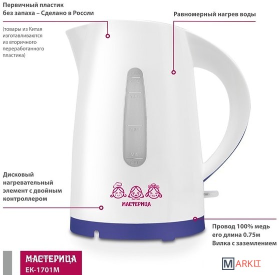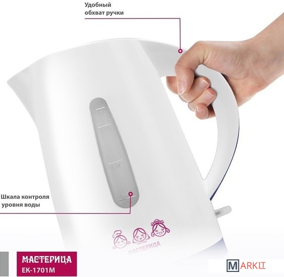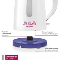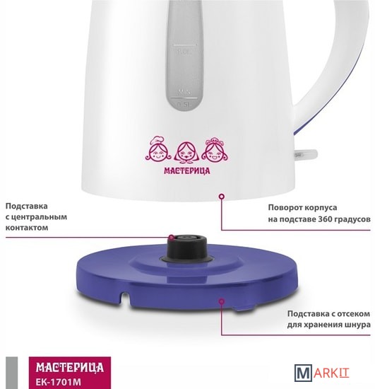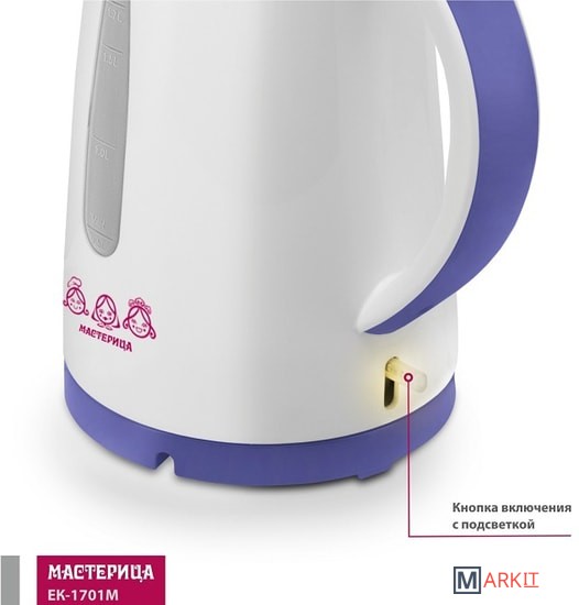 Markit » Электрочайники и термопоты » Электрический чайник Мастерица EK-1701M (белый/фиолетовый)