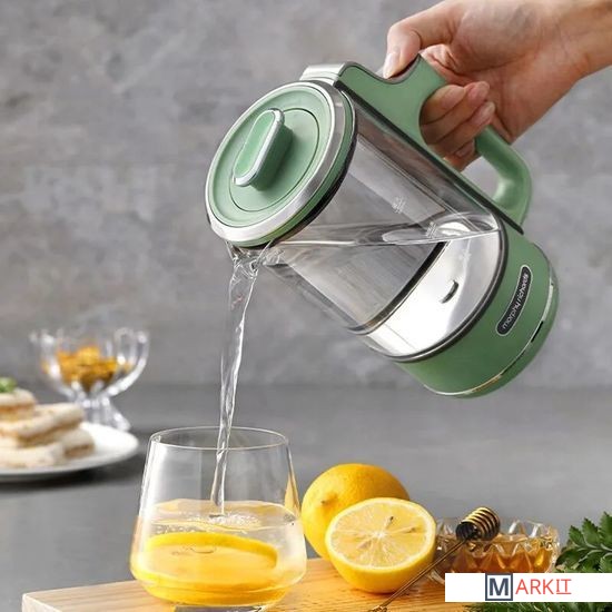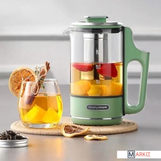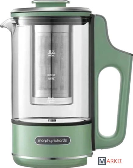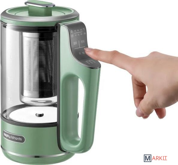 Богатый вкус листового чая, раскрытый в соответствии со всеми тонкостями чайной церемонии.Полезный лимонад или компот, охлажденный кубиками льда, прежде чем переливать в посуду.Небольшие порции еды для перекуса в походных условиях.Порция молочной каши из чайника – полезный завтрак вдали от дома.Офисная кулинария, которая не мешает коллегам – без шума и запахов.Бокал глинтвейна или пунша с идеальными пропорциями, как на изысканной вечеринке.Помимо разнообразных способов обработки ингредиентов, можно настраивать каждый день и напиток по своему усмотрению. Для этого предусмотрены: 3 режима нагрева чайника – 45°C, 80°C, 100°C и 3 варианта длительности поддержания температуры - 15 мин, 45 мин, 90 мин. Не все варианты температуры и времени комбинируются между собой – так, чайник откажется кипеть 90 мин при температуре 100°C. Подробнее подскажет само умное устройство.Интегрированный дизайн с сенсорным интерфейсом, встроенным в ручку чайника – чтобы отдавать команды одним прикосновением. Компактный корпус объемом 600 мл создан быть всегда под рукой. Его легко снять с подставки и захватить с собой, чтобы наслаждаться приготовленным напитком на важной встрече, во время прогулки с детьми или собакой, в перерывах между работой в саду. Это настоящий эксперт в области приготовления и раскрытия вкуса чайного листа.Ради надежности и качества фито чайника, который прослужит вам долгие годы, как фирменные долгожители техники Morphy Richards, отобраны самые безопасные и износоустойчивые материалы:Термоустойчивое кремниевое стекло графина и внутренней колбы – не боится нагревания и охлаждения, легко моется, не впитывает запахи.Фильтр и заварник из нержавеющей стали SUS304 – не содержат тяжелых металлов.Утолщенное стальное дно чайника – быстро нагревается, защищает от накипи и нагара.2 сменные крышки – для моментального тюнинга и выполнения различных операций с содержимым колбы и графина.