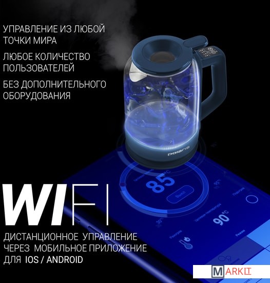 Markit » Электрочайники и термопоты » Электрический чайник Polaris PWK 1720CGLD Wi-Fi IQ Home (синий)