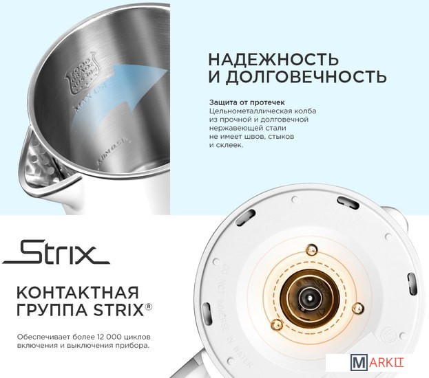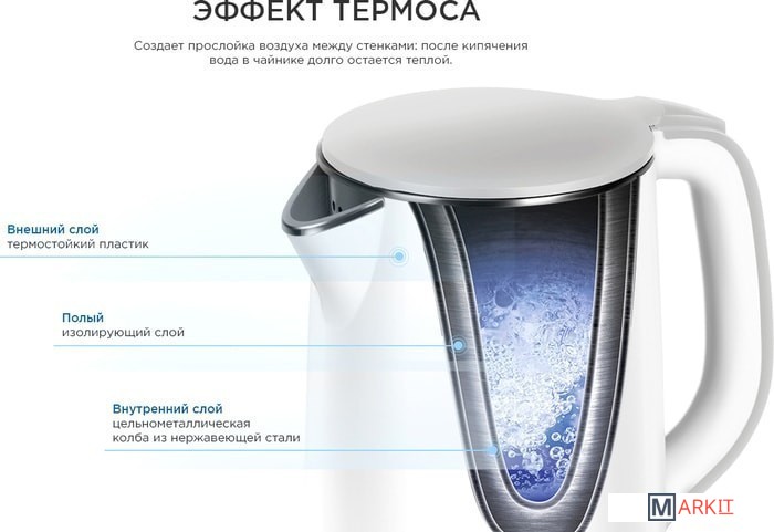 Автоотключение:• при закипании• при отсутствии водыОтсек для хранения электрошнура