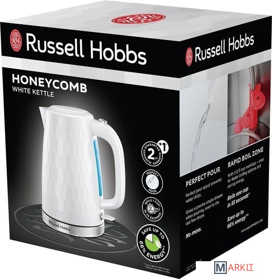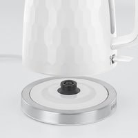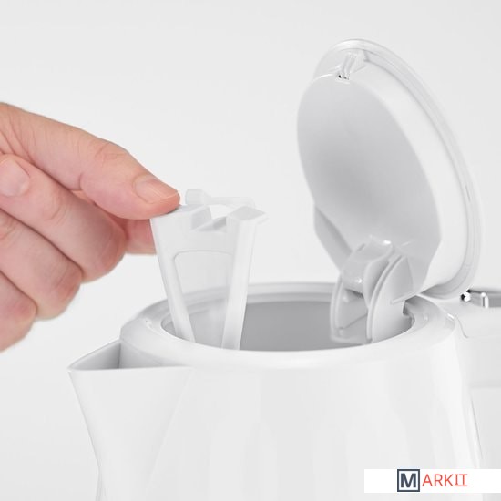 Корпус выполнен из высококачественного пластика белого цвета - элегантная комбинация текстурированной поверхности чайника и элементов, выполненных из нержавеющей сталиЗоны быстрого кипячения на 1, 2 или 3 чашкиКипячение воды на 1 чашку за 55 секунд*Сохраняет до 66% электроэнергии**Система «Идеальный носик», предотвращающая появление капель при наливании напиткаИндикация включенияОткрытие крышки нажатием кнопкиИндикация уровня водыПоворотное на 360° основание с системой хранения шнураСъемный, моющийся фильтр от попадания накипи в чашку, который легко извлечь и промытьСертифицированные контролеры Strix - многоуровневая система безопасностиВес нетто с подставкой: 1.1 кг.Автоотключение: при закипании, при отсутствии воды, при снятии с подставки