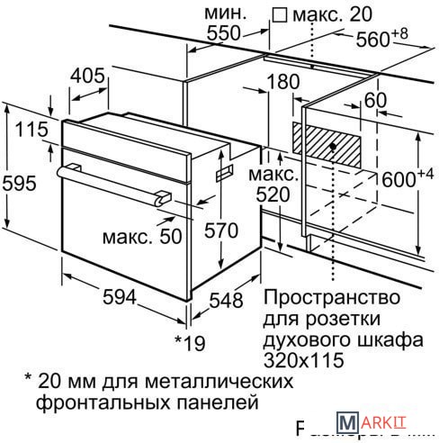 | Размеры ниши для встраивания |