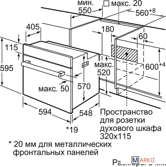 | Размеры ниши для встраивания |