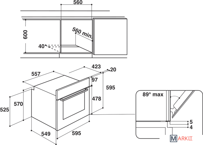 | Размеры ниши для встраивания |