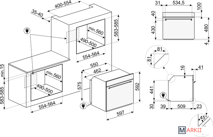 | Размеры ниши для встраивания |