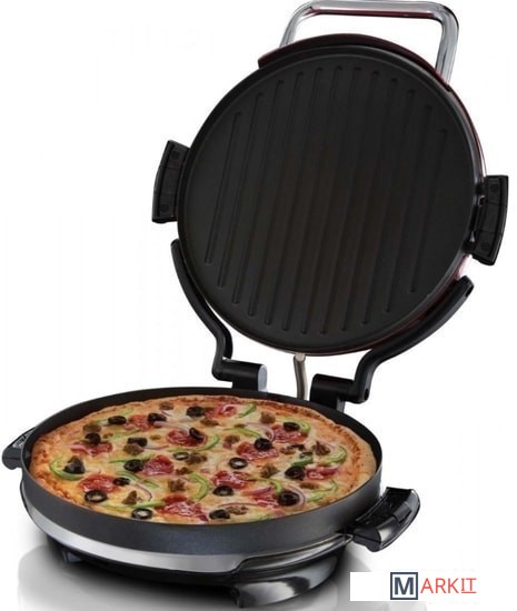 Круглые панели гриля вмещают до 7 порций (685 см2)2 съемные панели, можно мыть в посудомоечной панелиДополнительный глубокий противень для запекания и выпечки пиццы диаметром 30 см. Регулировка температуры Универсальное применение: приготовление мяса, рыбы, овощей, десертов, омлетов, пирогов и запеченных продуктов
