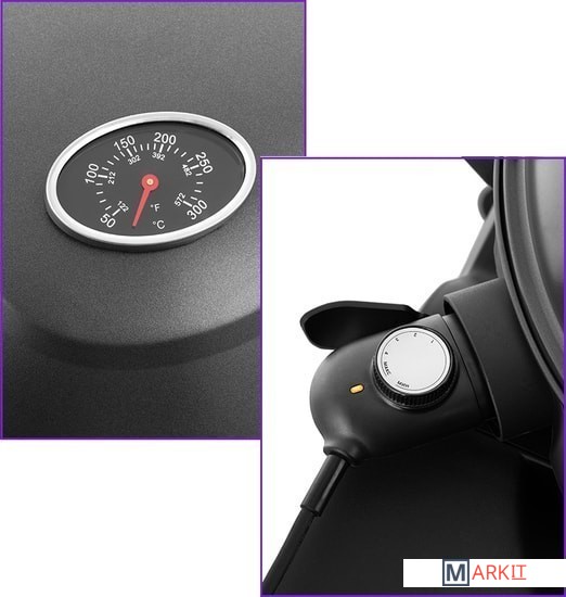 Встроенный термометр.Длина шнура питания: 2.8 м.Полочка для принадлежностей и продуктов.