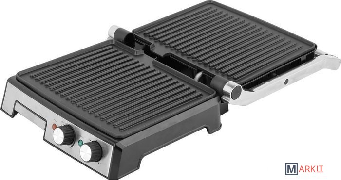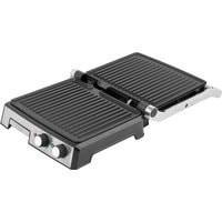 закрытая площадь гриля: 708 см2площадь открытого гриля: 1416 см2антипригарное покрытие, которое легко чиститьэлементы из нержавеющей стали на корпусеконтроль температурырегулировка времени - таймер. Обратный отсчет времени (максимум 30 минут)индикатор питания и режима ожидания3 варианта гриля - решетка в сложенном виде, решетка разложена на 90 °, решетка разложена на 180 °регулировка нагревательных пластин по высоте поджаренных продуктовкрутая ручкаподдон для сбора жираболее высокий край облегчает поддержание чистоты в зоне грилядвусторонняя рифленая поверхность обеспечивает равномерное поджаривание продуктовкабель: 70 см