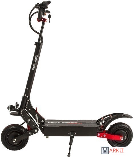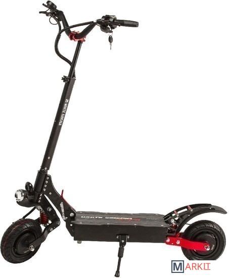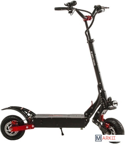 Амортизаторы пружинного типа с возможностью регулировки, упор для ноги, фара «Арктик», батарея на 23a Panasonic, тросиковые тормоза, мощные моторы, батарея с балансиром, безлюфтовой руль. Самокат является облегченной версией Baikal. Самокат оснащен зарядным устройством на 3A, которое может зарядить ваш самокат за 7 часов.Байк оснащен электросигналом. На руле располагаются USB-порт 1шт и замок вкл/выкл.