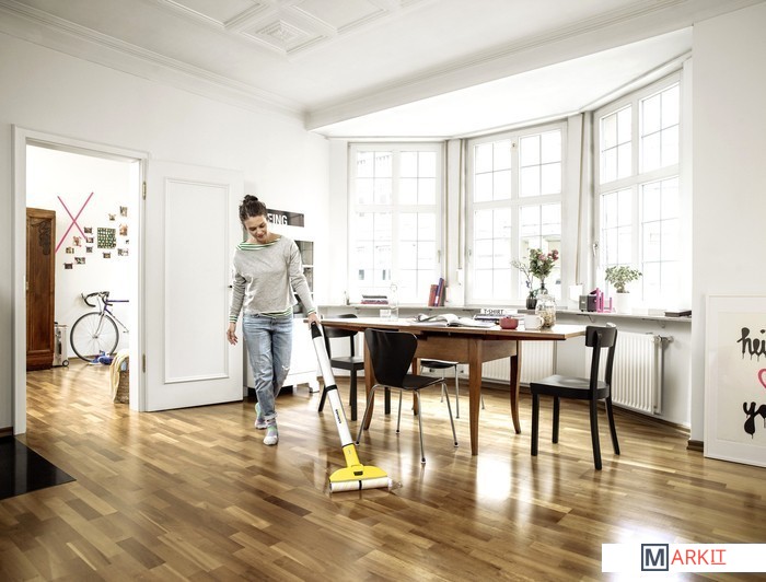 Для удаления с пола пятен или брызг совсем не обязательно с усилием тереть его шваброй и переносить тяжелое ведро с водой. Гораздо более удобным решением является аппарат для влажной уборки пола EWM 2, оснащенный двумя бачками и вращающимися роликовыми щетками. Щетки непрерывно увлажняются чистой водой и очищаются от грязи, которая собирается в бачок для грязной воды. Благодаря этому на 20 % повышается эффективность уборки по сравнению с использованием обычной швабры*. При этом благодаря узкой форме корпуса и шарнирному креплению щеточной головки аппарат занимает минимум места при хранении и позволяет легко очищать пол под мебелью. Время высыхания пола составляет лишь около 2 минут, что позволяет без опасений использовать аппарат для уборки любых твердых напольных покрытий, например керамической плитки, ПВХ, винила, паркета или ламината. Мощный литий-ионный аккумулятор обеспечивает непрерывную работу продолжительностью до 20 минут, которой достаточно для уборки пола площадью до 60 м².