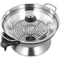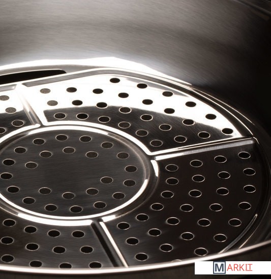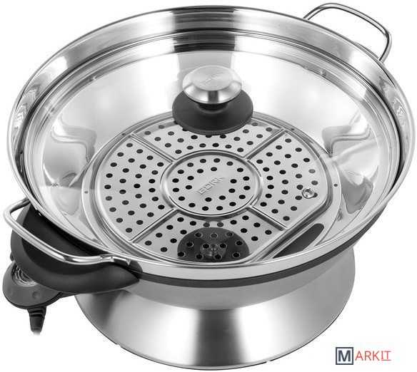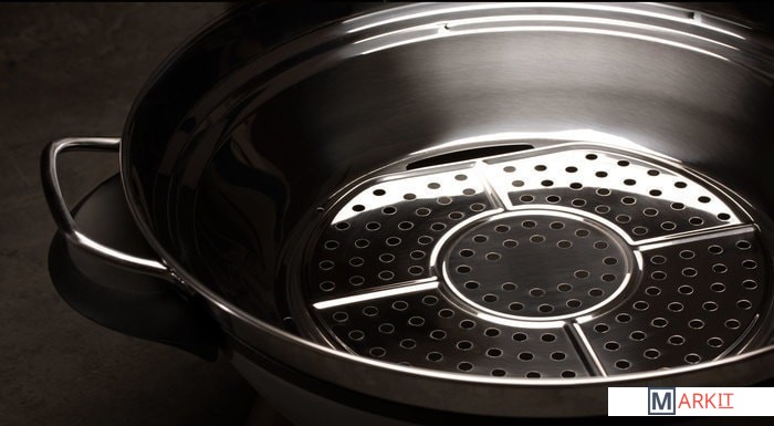 Электрический вок с увеличенной чашей, пароваркой и режимами для приготовления блюд различными способами. В воке объёмом 8 л удобно готовить блюда для большой компании: плов, том ям, овощи, супы, ризотто, компоты и даже фондю. Крышка с регулируемым выходом пара поможет при тушении на медленном огне и сохранит блюдо горячим.