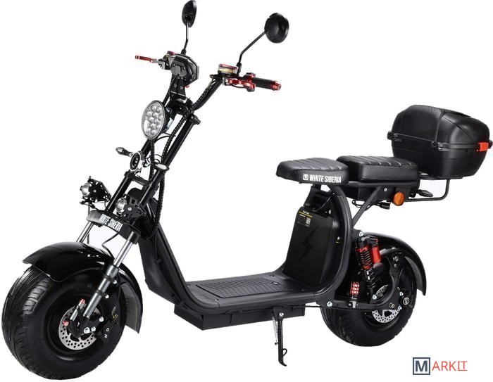 скутер 1шт.;бокс 1 шт.;спинка второго пассажира 1 шт.;документ+инструкция 1 шт.;набор инструментов 1 комплект;зарядное устройство 3 A 1шт.;зеркала заднего вида 1 пара;держатель телефона с USB 1шт.