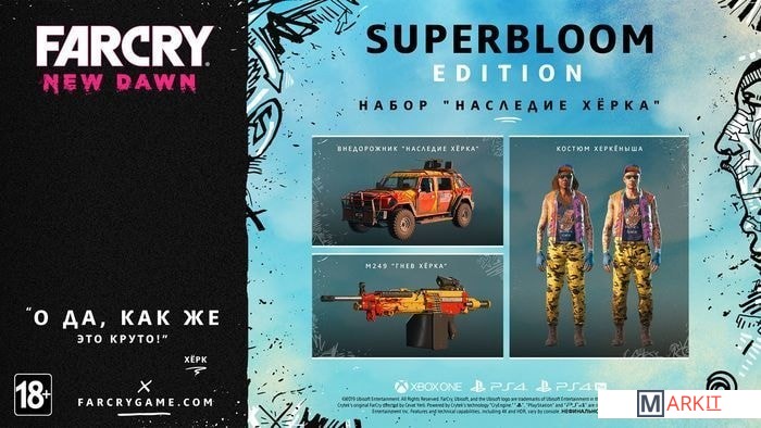 - Игра Far Cry: New Dawn;- Набор Наследие Херка, включающий в себя раскраски для пулемета и транспорта, а также костюм для персонажа. Бросьте вызов врагам и хорошему вкусу, позаимствовав стиль самого Хёрка Драбмена Младшего.