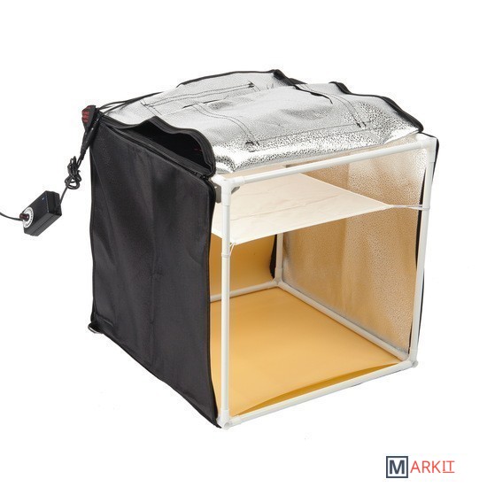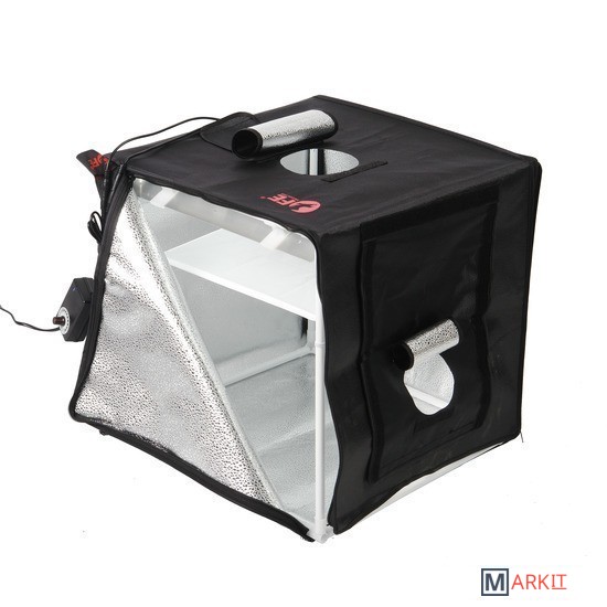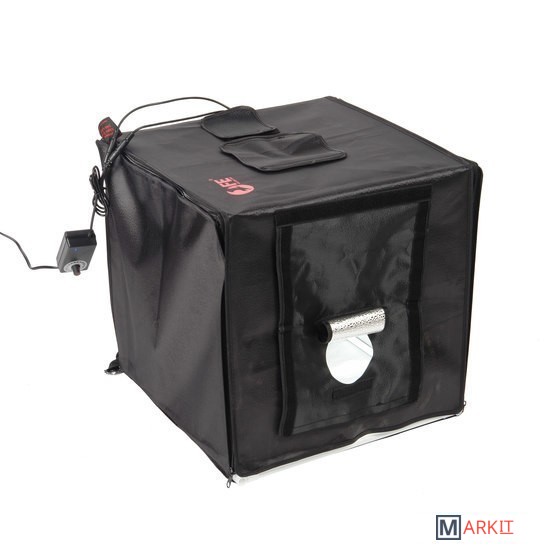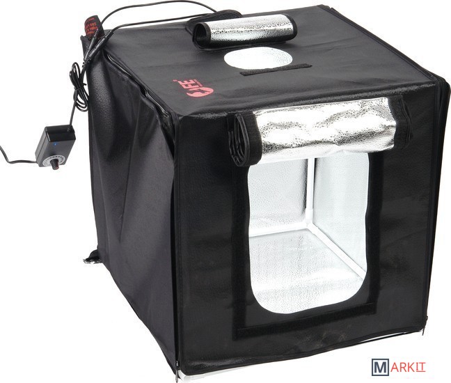 Складной быстросборный фотобокс Falcon Eyes Light Cube Z40 LED используется для получения бестеневой предметной или макро- фотографии в условиях офиса, студии или на выезде. Позволяет снимать средние и небольшие объекты для каталогов, интернет-магазинов, фотоблогов с минимальной постобработкой фотографий за счет равномерного освещения предметов светодиодными панелями.Освещение фотографируемых предметов осуществляется двумя съемными светодиодными панелями общей мощностью 20 Вт по 24 светодиода каждая, которые крепятся к каркасу корпуса на клипсах. Диммер, размещенный на кабеле питания устройства, позволяет плавно регулирующий мощность двух осветительных панелей одновременно.