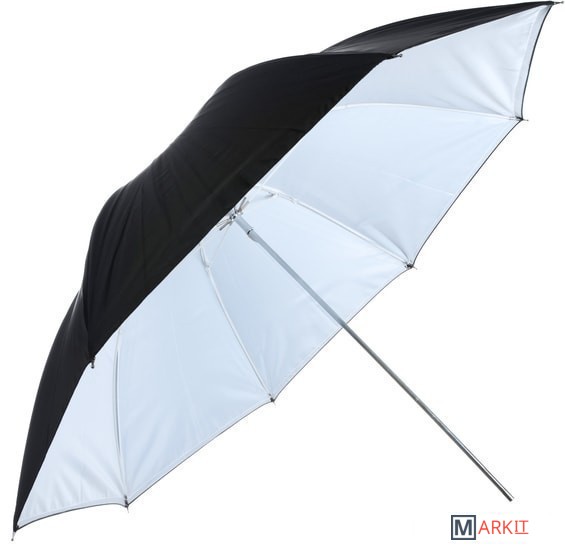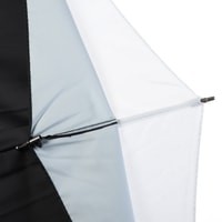 Falcon Eyes URK-60TSB1 – комбинированный зонт 2 в 1: просветный/серебристый. Диаметр 122 см.Просветный зонт покрыт белой полупрозрачной тканью. Световой поток от вспышки попадает на ткань зонта, максимально рассеивается и, увеличивая площадь излучения, равномерно освещает объект съемки. Таким образом, резкий точечный свет, излучаемый при срабатывании фотовспышки, преобразуется в достаточно мягкий световой поток, излучаемый с большей площади. Серебристая поверхность зонта дает более жесткий, по сравнению с белыми зонтами, свет, что позволяет получать контрастное изображение с четкими тенями. Два зонта можно использовать совместно для получения более яркого света чем при использовании просвечивающей поверхности, но более мягкого, чем при использовании серебристой.Прочные эластичные спицы из стекловолокна и соединительные элементы из ударопрочного пластика для долговечного использования - спицы не ржавеют, сохраняют форму на протяжении всего срока эксплуатации, устойчивы к механическим воздействиям. Ткань из полиэстера обладает высокой износостойкостью.