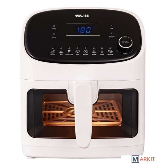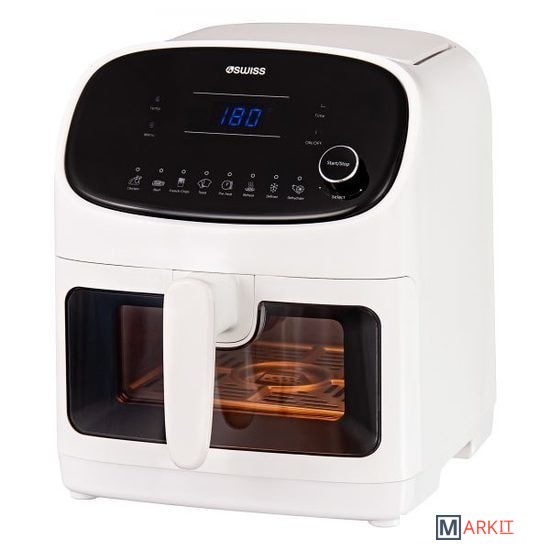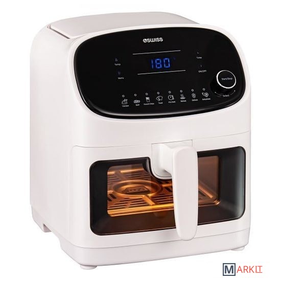 Фритюрница белого цвета 4Swiss ABB-021 обеспечивает циркуляцию горячего воздуха вокруг продуктов, что позволяет готовить еду без использования масла.