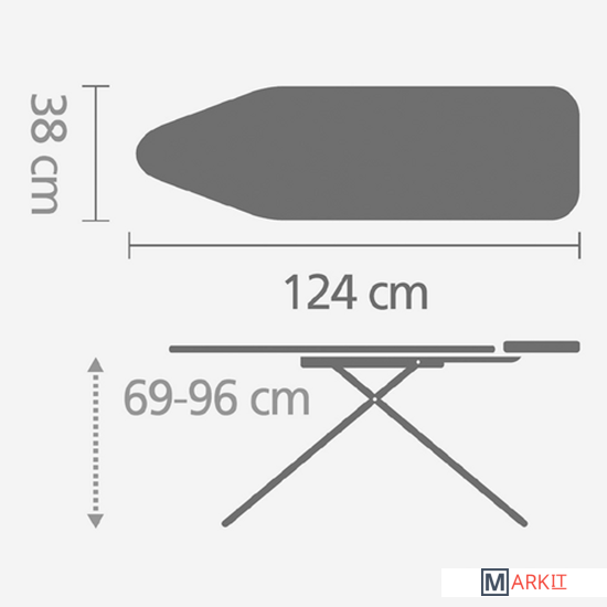 Доска имеет широкую рабочую поверхность и подходит для всех распространенных типов паровых утюгов. Предусмотрена регулировка по высоте в 7 положениях.Прочная стационарная подставка для парового утюга с термоустойчивыми противоскользящими защитными вставками, предотвращающими повреждение утюга.Устойчивая столешница – прочный каркас на 4 ножках (стальная труба диаметром 22 мм).Стандартная модель для быстрой и комфортной глажки.Функция фиксации в сложенном положении для переноски и хранения.Эргономичная конструкция – регулировка по высоте в 7 положениях (69– 96 см).Чехол из натурального хлопка с упругой поролоновой подкладкой.Повышенная безопасность для детей – предохранительный фиксатор, предотвращающий случайное складывание доски.Прочные защитные противоскользящие колпачки.