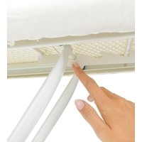 Компактная модель для быстрого глажения (110х30 см).Отсутствие деформации и прогибов сетки – запатентованная конструкция.Регулировка по высоте в 7 положениях (69-96 см).Металлическая подставка для парового утюга.Чехол из 100% хлопка с упругой подкладкой (8 мм поролона).Устойчивая столешница – прочный каркас на 4 ножках (диаметр 22 мм).Защитные нескользящие колпачки – устойчивость и защита от царапин.Предохранительный фиксатор от случайного складывания доски.Фиксации доски в сложенном положении.