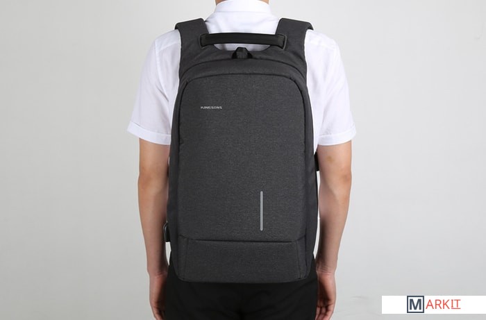 Главной особенностью данного рюкзака является наличие внешнего USB-порта для зарядки электронных устройств. Рюкзак изготовлен из влагонепроницаемого и устойчивого к порезам материала.