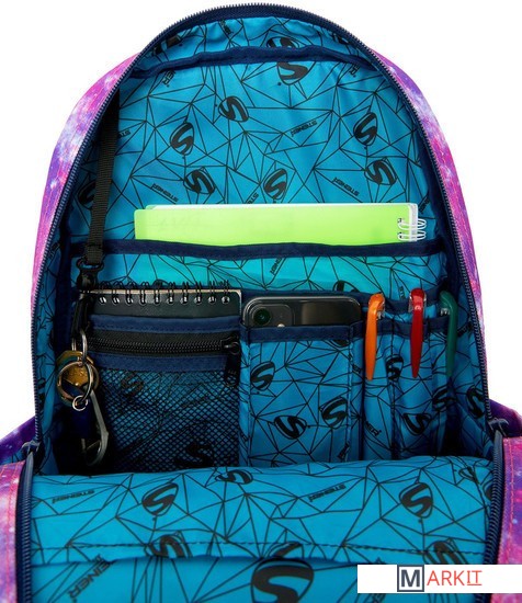Особенности:_x000D_Ортопедическая спинка с дышащей мембраной, ортопедические лямки S-образной формы, грудная стяжка, плотная ручка, боковые карманы для воды, удобный органайзер, карабин для ключей, отделение для ноутбука/планшета, большое отделение для книг и тетрадей, фирменная подкладка Steiner цвета морской волны, дополнительная прострочка в особо важных местах._x000D_Внешние размеры, мм 400х250х170