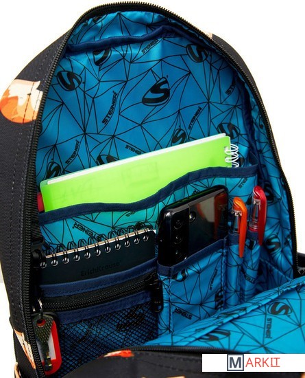 Особенности:_x000D_Ортопедическая спинка с дышащей мембраной, ортопедические лямки S-образной формы, грудная стяжка, плотная ручка, боковые карманы для воды, удобный органайзер, карабин для ключей, отделение для ноутбука/планшета, большое отделение для книг и тетрадей, фирменная подкладка Steiner цвета морской волны, дополнительная прострочка в особо важных местах._x000D_Внешние размеры, мм 400х250х170