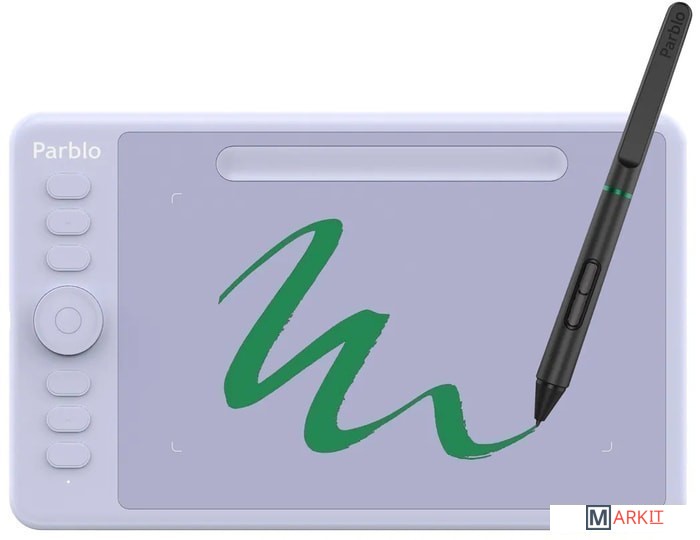 Новое поколение графических планшетов:- Серия цифровых планшетов Intangbo использует инновационную технологию беспроводной пассивной электромагнитной индукции и функцию определения наклона пера до 60 градусов. Теперь устройство возможно подключать к системе Android и использовать с различными программами для рисования на мобильных телефонах и планшетах.Дизайн устройства:- Рабочая область Intangbo M составляет около 10*6,25 дюйма, цвет продукта - Star Black.Общий дизайн выполнен с использованием стандартной компоновки 8 клавиш с левой стороны и колеса с механической осью, которое находится посередине области кнопок. Все клавиши легко настраиваются в интерфейсе драйвера устройства для повышения творческой эффективности.Максимальная функциональность:- Перо графического планшета имеет беспроводную технологию пассивной электромагнитной индукции, ручка для рисования не требует батареи или зарядки.8192 уровня чувствительности к давлению обеспечивают более тонкое и качественное рисование. Поддержка функции определения наклона пера ±60 градусов поможет вам профессионально штриховать и затенять изображения. Скорость чтения рукописного ввода составляет 266RPS, поэтому рисование плавное и без задержек.Режим левши:- Графический планшет Parblo Intangbo M (Black) поддерживает режим для левшей и для правшей для различных сценариев использования.Совместимость:- Windows: 7/8/10 (32/64 бит) или новее - Mac OSX: 10.11 или новее - Android 6.0 или новее