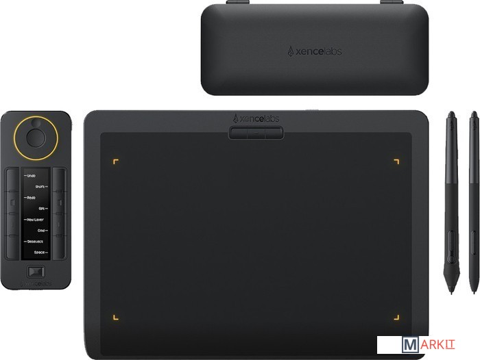 Поставляется с двумя беспроводными перьями. Перья отличаются размером и толщиной. У тонкого пера присутствуют 2 дополнительные кнопки, а у более крупного пера их 3 — они подходят для художников, работающих с 3D-графикой. Оба пера имеют функцию ластика и чувствительность к нажатию (8192 уровней), могут распознать наклон и при работе срабатывают практически без задержек.Quick Keys предлагает пять наборов из восьми клавиш для 40 настраиваемых сочетаний клавиш (для каждого приложения). Пульт оснащен OLЕD-дисплеем для отображения назначения каждой клавиши и может использоваться в портретном или ландшафтном режиме.
