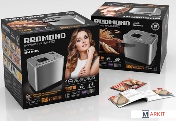 Хлебопечь REDMOND RBM-М1920 Хлебопечь RBM-M1920 — современный многофункциональный прибор для приготовления хлеба и других блюд в домашних условиях.Хлебопечь М1920 приятно удивит 19 автоматическими программами. Теперь можно без труда испечь любимый вид хлеба в домашних условиях, например, цельнозерновой, ржаной или французский. Одним из несомненных преимуществ прибора является антипригарное покрытие чаши. Whitford «Xylan Plus», отличающееся долговечностью и безопасностью.М1920 также оснащена функциями автоподогрева готовых блюд и отсрочки старта программы. Таймер позволит приготовить еду к заданному времени. По желанию в хлеб можно добавить дополнительные ингредиенты, такие, как семечки, орехи или изюм. Хлебопечь оповестит, когда это нужно сделать, звуковым сигналом. Вы будете в восторге от такой практичной техники!КНИГА РЕЦЕПТОВ В ПОДАРОК!
