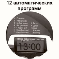 | Перечень режимов работы | вареньекекссладкая выпечкаускоренная выпечка из готовой смесифранцузский хлеб |