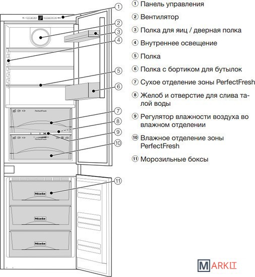 Конструкция с нижней морозильной камерой