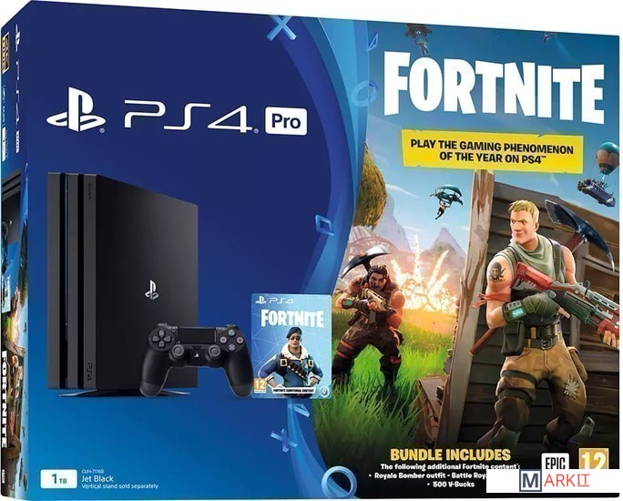 • Консоль PlayStation 4 Pro• Беспроводной геймпад Dual Shock 4• Моногарнитура• Кабель питания• HDMI-кабель• USB-кабель• Дополнительный контент для Fortnite Battle Royal (внутриигровая валюта, скин персонажа)Вертикальная подставка в комплект не входит! |