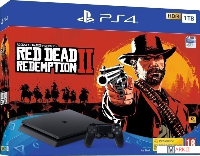 • Консоль PlayStation 4 Slim• Беспроводной геймпад Dual Shock 4• Моногарнитура• Кабель питания• HDMI-кабель• USB-кабель• PS Plus 14 дней• Игра Red Dead Redemption 2Вертикальная подставка в комплект не входит!