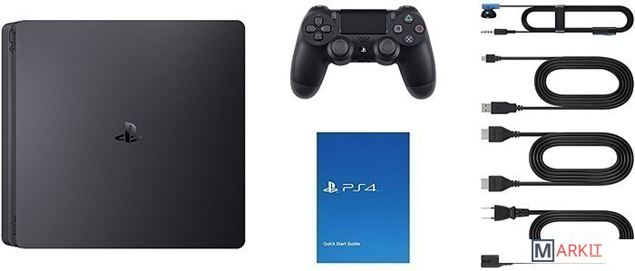 • Консоль PlayStation 4 Slim• Беспроводной геймпад Dual Shock 4• Моногарнитура• Кабель питания• HDMI-кабель• USB-кабель• PS Plus 14 дней• Игра Horizon Zero DawnВертикальная подставка в комплект не входит!