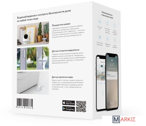 Комплект "Видеоконтроль и безопасность" – это полноценный охранный комплекс, который позволяет наблюдать за домом и контролировать ситуацию со смартфона.В комплект входит:Поворотная Wi-Fi камера RV-3404 - 1 шт.Датчик открытия RS-3210 - 1 шт.Датчик протечки воды RS-3220 - 1 шт.