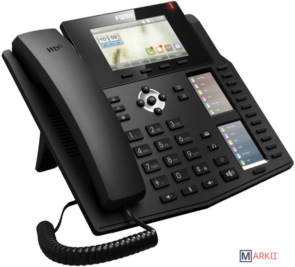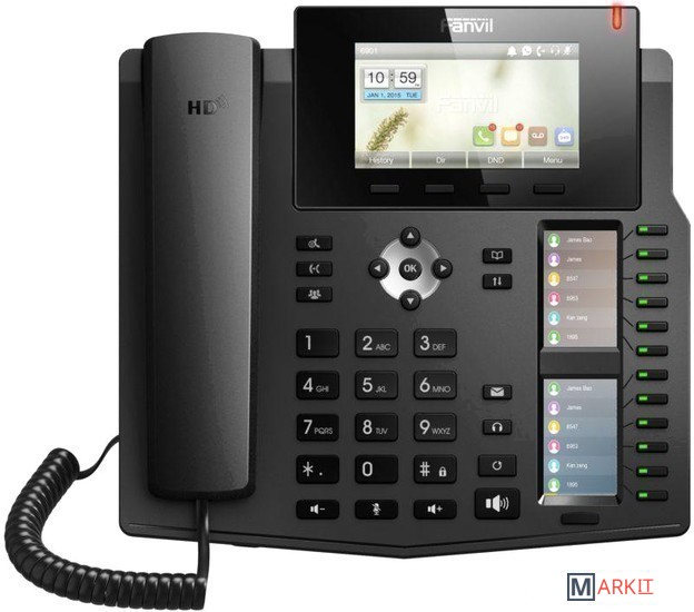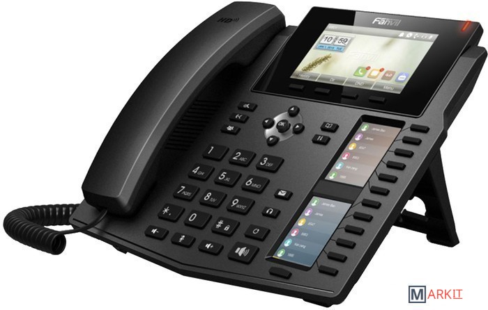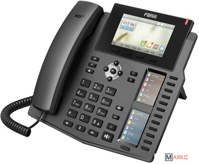 Fanvil X6 — телефон бизнес класса с большим цветным дисплеем и двумя дополнительными дисплеями для индикации занятости абонентов и быстрого набора.Особенности:- Два дополнительных цветных дисплея с 12 программируемыми клавишами и поддержкой 5 виртуальных страниц, что даёт в совокупности 60 программируемых клавиш.- Два порта Gigabit Ethernet – 10/100/1000 Мбит/с, с поддержкой PoE.- Дружелюбный и эргономичный дизайн, яркий цвтной дисплей.- Совместимость с оборудованием большинства производителей платформ для IP телефонии: 3CX, Asterisk, Broadsoft, Elastix, Zycoo, и др.